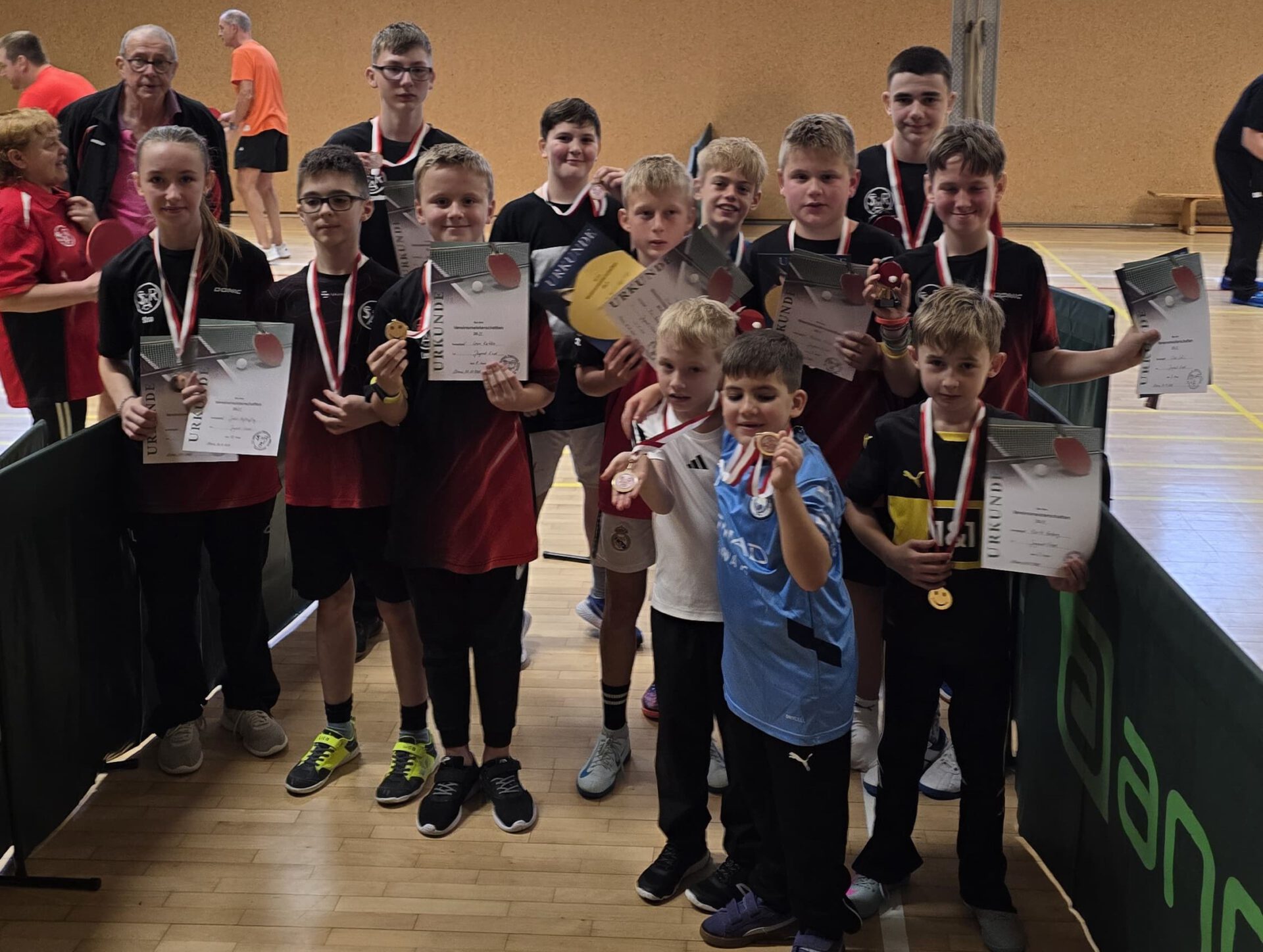 Neben dem Turnier konnten die anwesenden Nachwuchsspieler für das Tischtennissportabzeichen üben. Unter Anleitung von Sven Herberg und Martin Spelsberg mussten die Spieler/innen verschiedenste Übungen absolvieren und ihre Geschicklichkeit unter Beweis stellen. Am Ende wurden sie mit einer Erinnerungsmedaille belohnt.