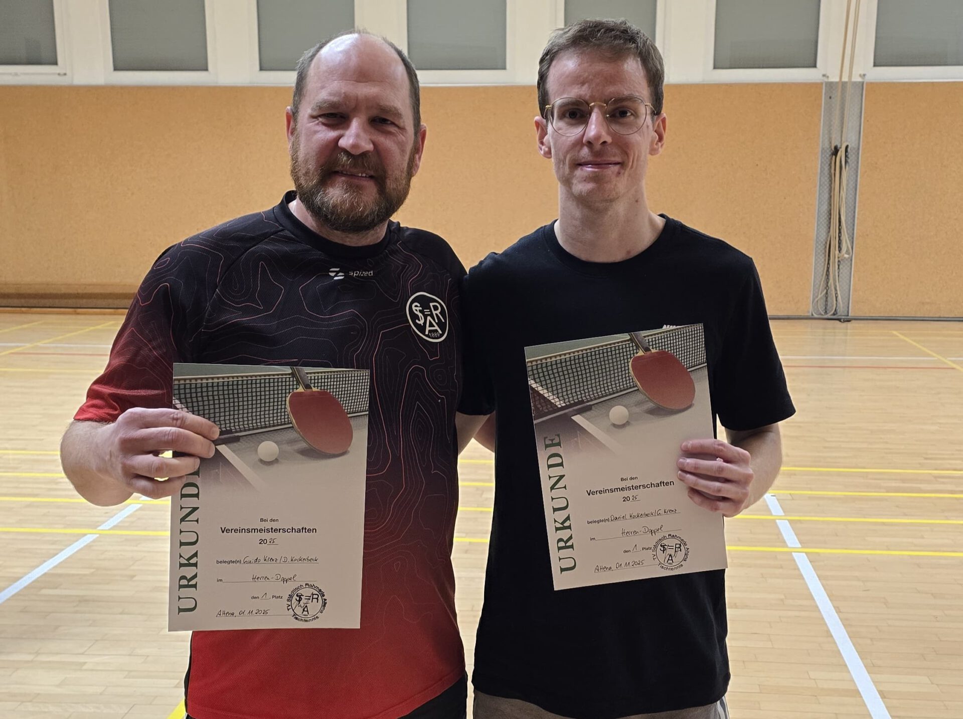 1. Jugend 15-Bezirksliga: TV StR Altena (U 15) – TV StR Altena (U 19) 1:9. Die Tischtennis-Saison 2025/26 ist auch für die Teams vom Galgenkopf eröffnet! Mit dem Nachwuchs-Derby hatte die neue Spielzeit auch gleich einen ersten Höhepunkt. Dabei behielten die „Älteren“, die altersbedingt außer Konkurrenz am Ligabetrieb teilnehmen, standesgemäß die Oberhand. Der ein oder andere Wackler schlich sich aber in das Spiel der U 19 ein, während die U 15, bei der mit Sina Lesic, Alexander Mattka und Leon Kattke gleich drei Akteure ihr Pflichtspieldebüt feierten, durchaus gute Ansätze zeigte.
