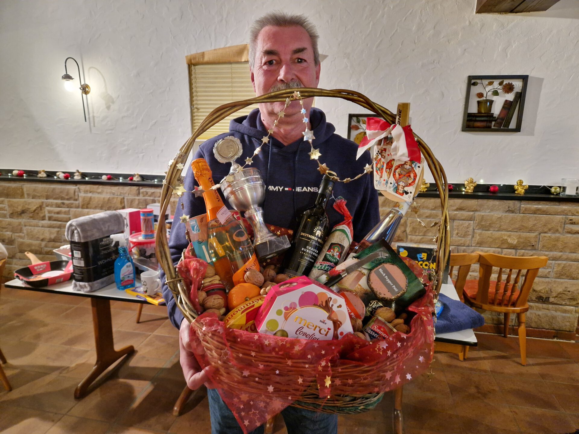 Trotz winterlicher Begleitumstände durfte Abteilungsleiter Thomas Weckwerth am ersten Samstagabend des neuen Jahres immerhin 27 Mitglieder zum traditionellen Mau-Mau-Turnier der Tischtennis-Abteilung begrüßen. Erstmals wurde das Kartenfestival im Haus Mayweg auf dem Nettenscheid ausgetragen. Diese Entscheidung zahlte sich aus, denn die kulinarische Versorgung war rundum perfekt. Sieger des Abends wurde der Abteilungsleiter selbst, der sich damit 33 Jahre nach seinem ersten Sieg im Jahre 1993 zum zweiten Mal Siegerpokal und Frühstückskorb sichern konnte. Nach drei Durchgängen mit je 15 Runden hatte Weckwerth mit 524 Punkten relativ klar die Nase vorn. Auf den Plätzen zwei und drei folgten Nathalie Meier (560 Punkte) und Markus Kemper (563). Weitere Bilder in der Galerie.